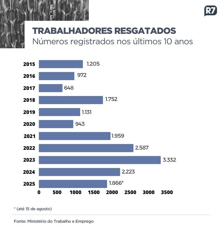 O número de trabalhadores resgatados em situação análoga à escravidão cresceu no meio urbano nos primeiros oito meses deste ano, na comparação a 2024.